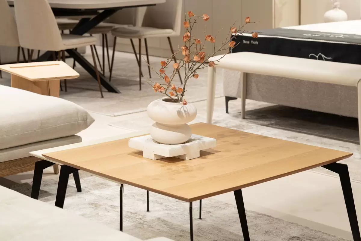 צילום שולחן סלוני מעוצב בצבע חום בחנות
