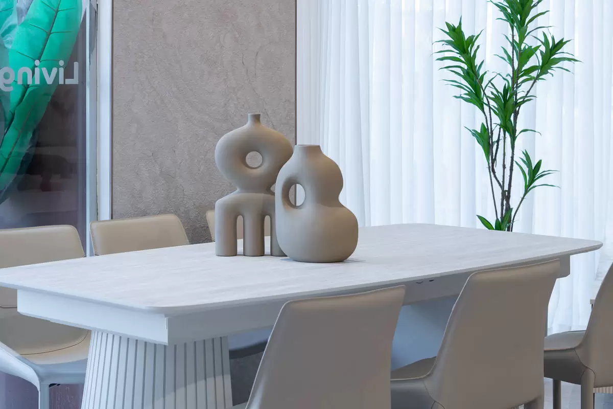 צילום שולחן עם כד פרחים מלאכותיים לקישוט