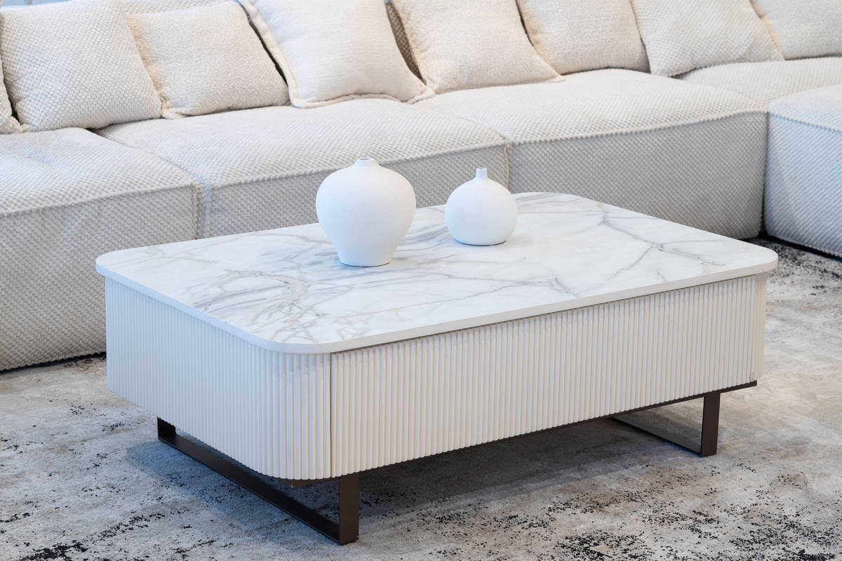 צילום שולחן סלוני מעוצב בצבע חום בחנות