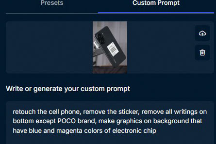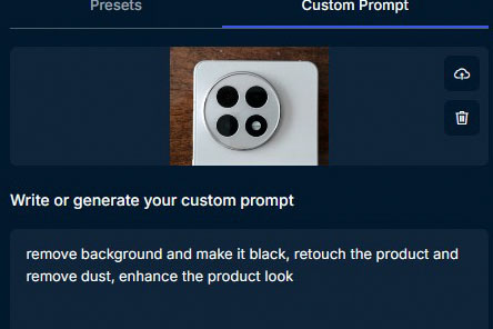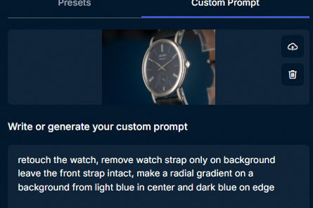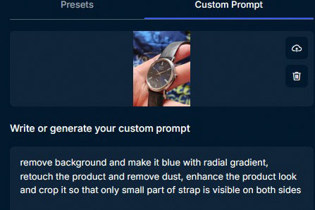 הקלט לתוכנה של AI לריטוש מוצרים: